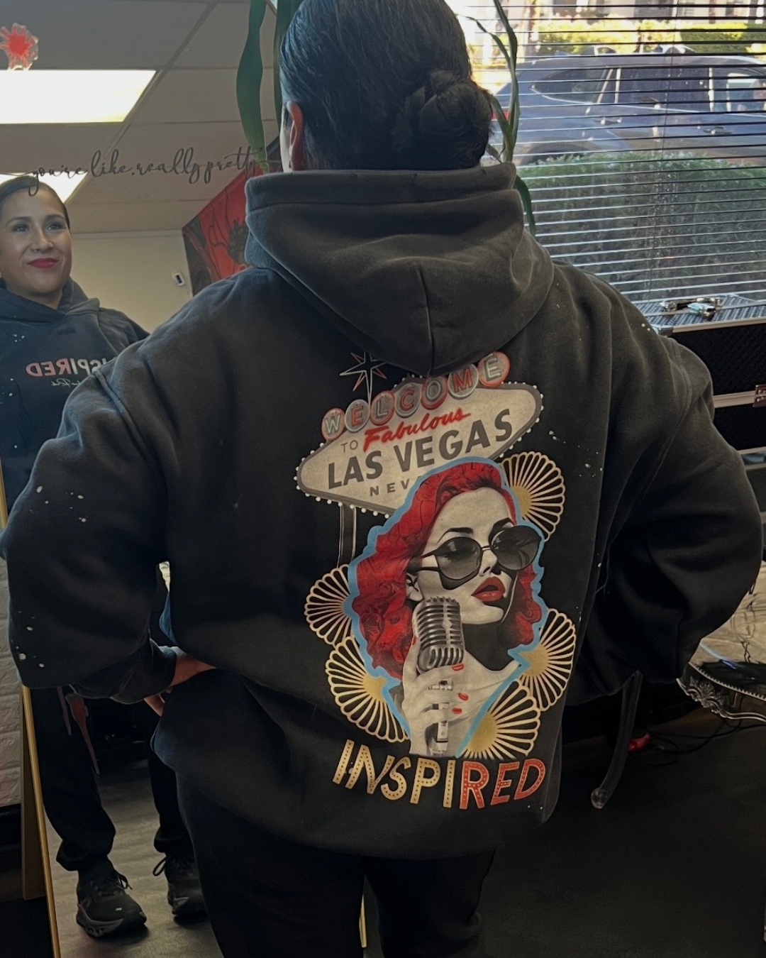 A few times a year Amber collabs with tattoo artists from around the world to bring designs to life. We currently have a select few of this hoodie design left. On the front it showcases the Inspired by Ms Amber Red logo. On the back as you can see is the design created by an independent artist. This is 1 of 9 hoodies available. These hoodies are very limited edition. They come is sizes Small, Medium, Large, and Extra Large. The hoodie itself is distressed and has paint splatter accents - hand-picked by Amber!Â